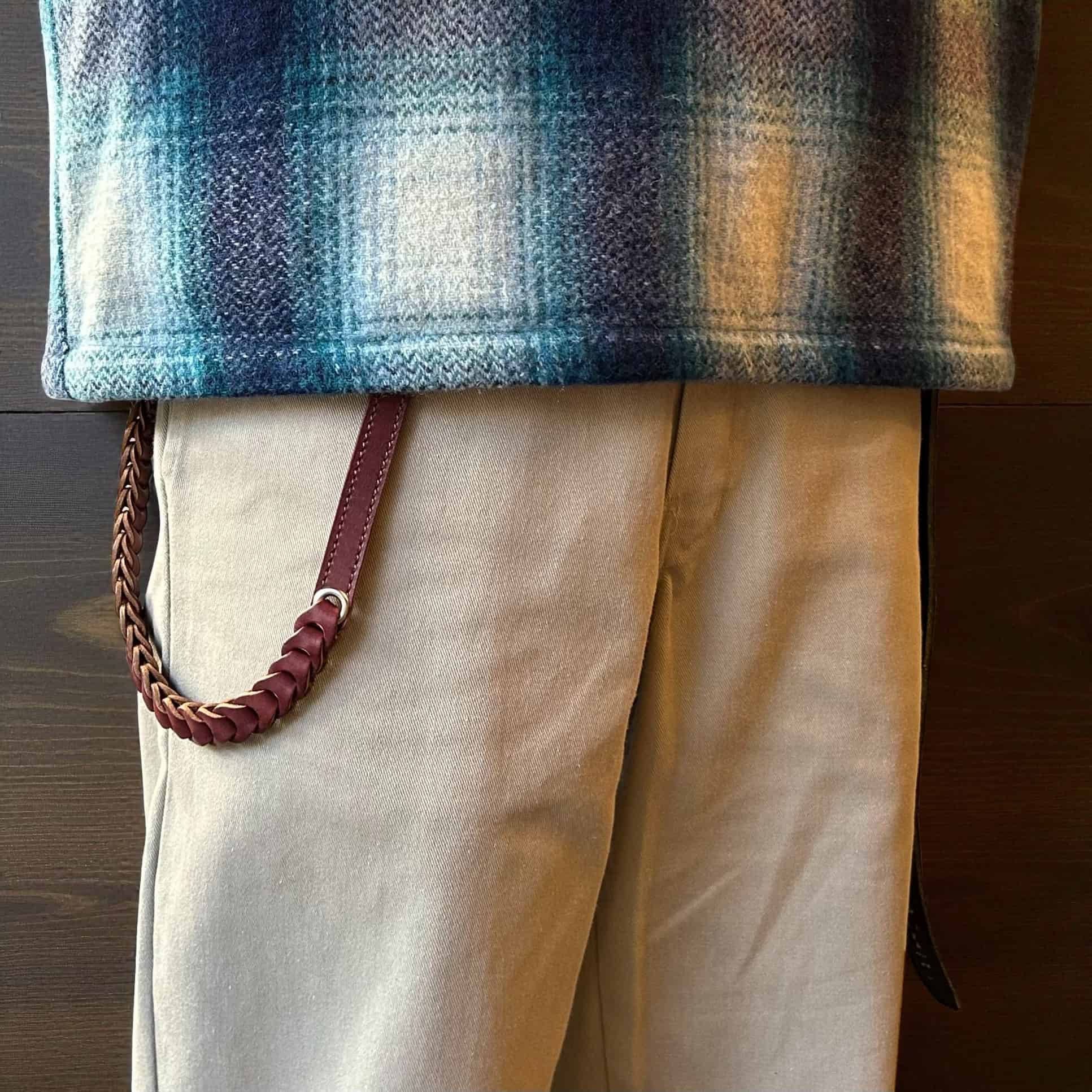 アメカジファッションでワークパンツを穿く機会もあると思いますが、太めのベルトループにも着用出来るようにしました。